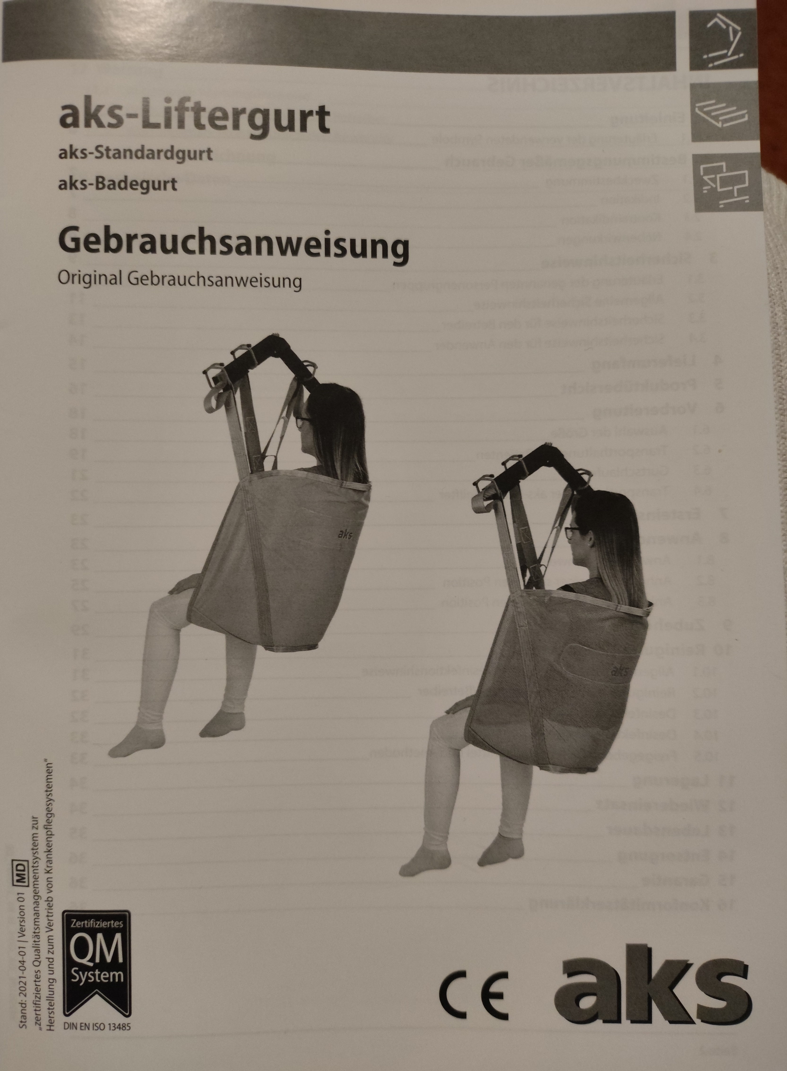 Der andere ist ein Hygienegurt mit offener Sitzfläche für leichteren Toilettengang.