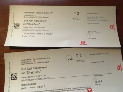 Startseite » Kleinanzeigen » Eva Karl Faltermaier 20.3. Stuttgart – 1 Ticket Rollstuhl mit Begl.