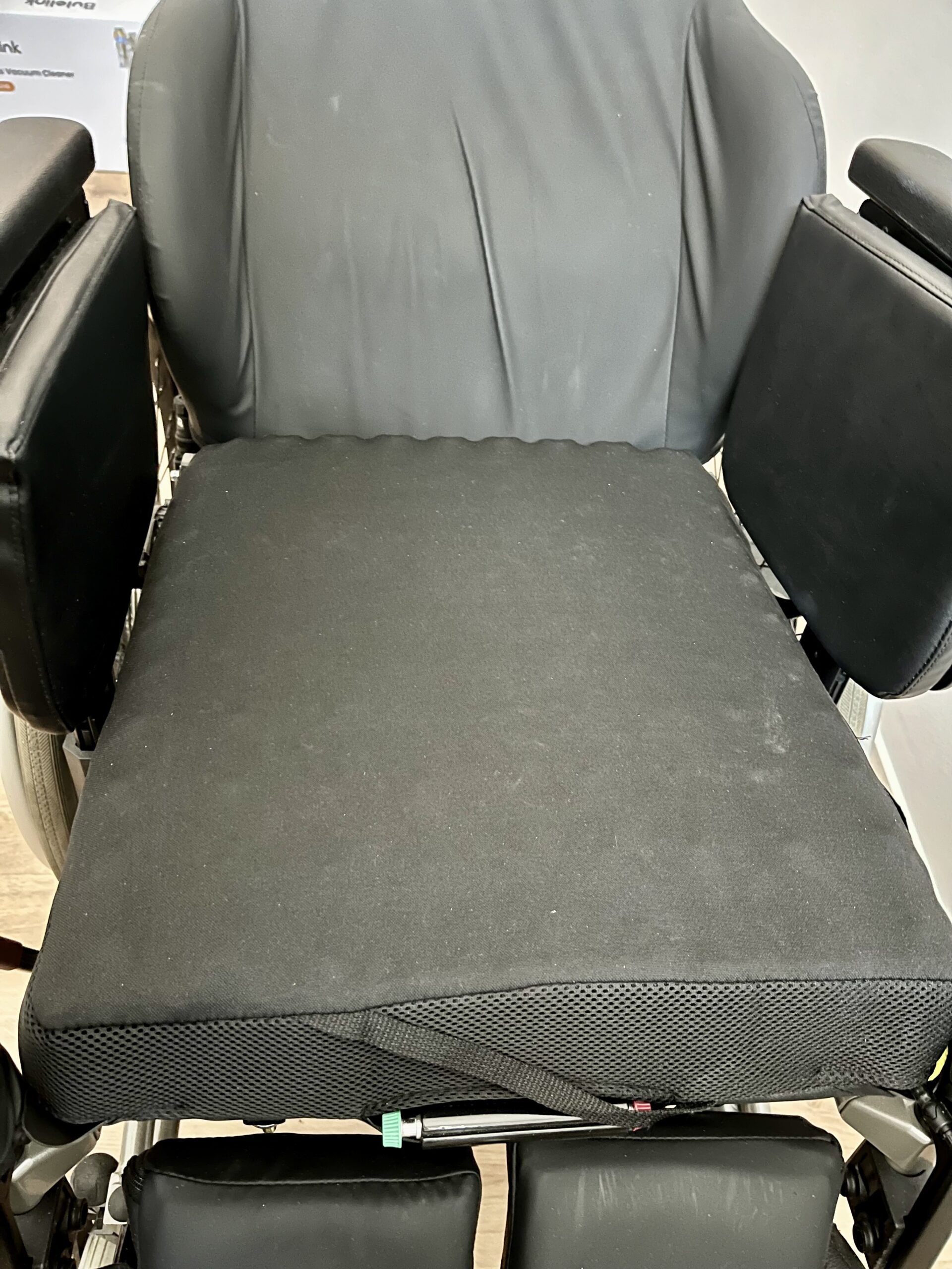 On top gibt es 2 Rollstuhl-Sitzsäcke für den Winter und das nachträgliche speziell angepasste Sitzkissen von Roho (Neupreis im Mai 2025: 885 Euro): Quadtro Select High Profile, 43x52x10 cm 4-Kammer-Kissen mit Zwei-Wege-Stretchbezug.