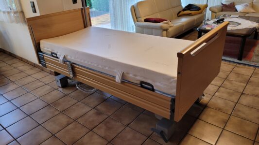 Das Bett wurde 2020 angeschafft aber erst 2025 für knapp 5 Monate genutzt. Die Matratze wurde nur 10 Tage genutzt da wir sie durch eine aufblasbare Matratze der Krankenkasse ersetzt hatten. Der Zustand ist einwandfrei und sehr gepflegt. Nur Abholung, kein Versand. Das Bett steht ausfgebaut bei uns und muß vermutlich von 2 Personen abgeholt werden. NP: 3578,50€